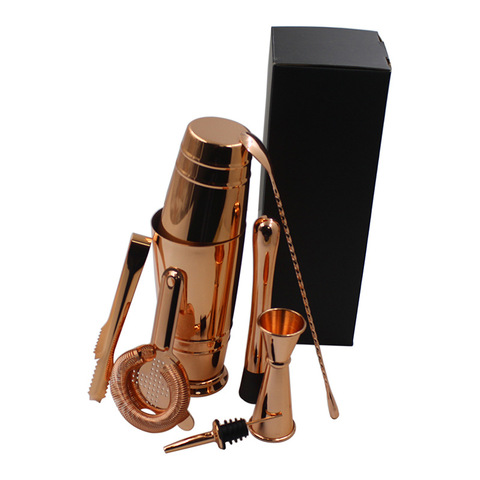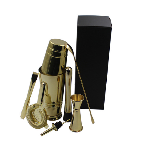 304 สแตนเลสค็อกเทล Shaker ชุดเจ็ดชิ้นชุด Shaker บ้านบาร์เครื่องมือสีต่างๆ
