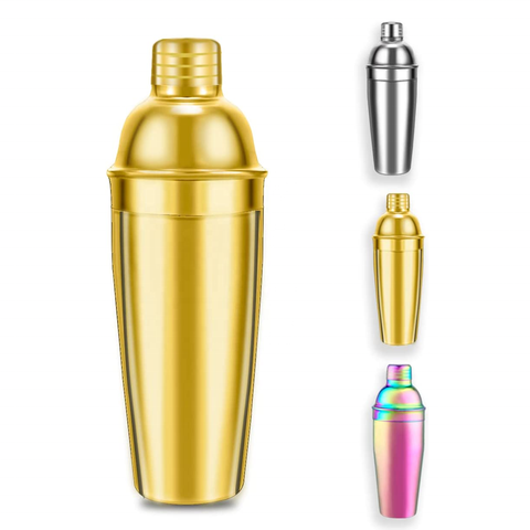 ค็อกเทลเชคเกอร์สเตนเลสสตีลสีทอง24ออนซ์,บาร์ผสมมาร์ตินี่เชคเกอร์ขวดเชคเกอร์ถ้วยโลหะสำหรับบาร์เทนเดอร์ขนาดใหญ่เครื่องผสมเครื่องดื่ม